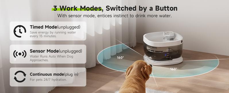 Wireless Dog Water Fountain,Battery Operated Dog Water Dispenser with Motion Sensor, 237 Oz/ 7L Cordless Fountain Water Bowl 3 Work Modes for Large Dogs Cats Multi-Pets - FP30